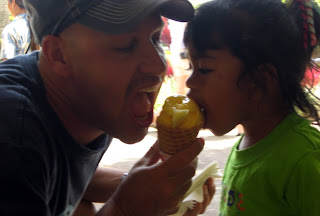 A visit to the Dole Plantation was a must for our family. This time we added the attraction of the plantation train, which gave us a 20-minute narration and music tour of the grounds. Makana enjoyed pointing out the "pi-pineapple" plants, banana trees, and various flower trees that we viewed. More exciting, however, was that she was on a TRAIN! She loves playing with her tiny set at home and looks forward to seeing one in motion (going holoholo) around our town. This time she was actually on one that looked like those in her videos and in her train set. :)